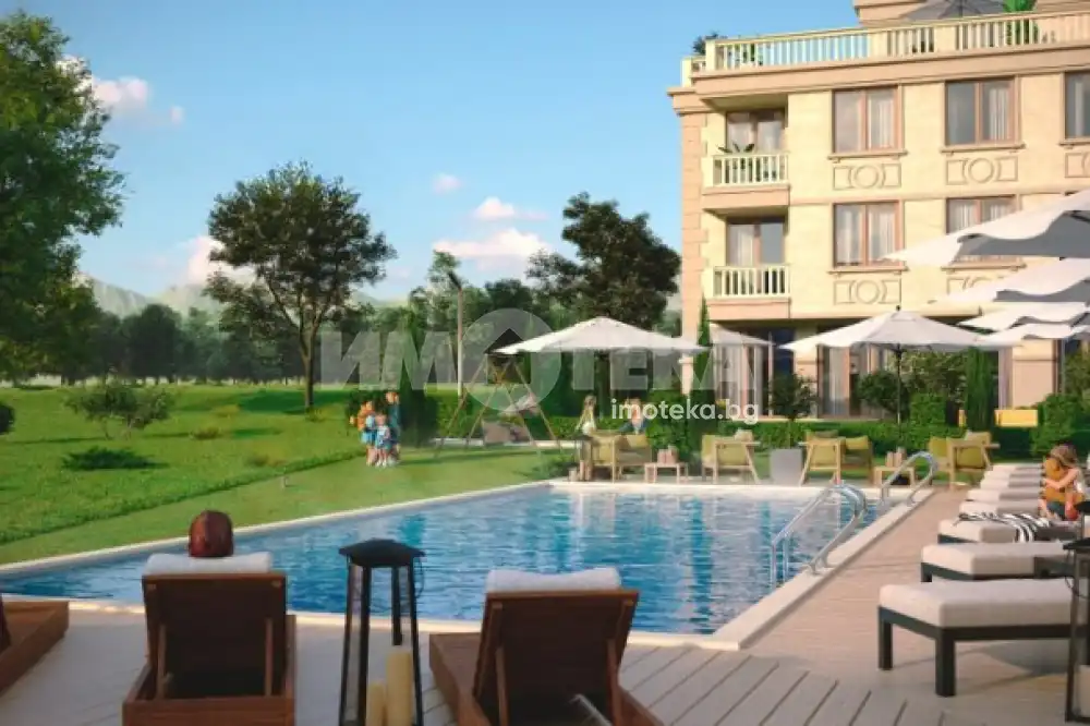 Спокойна крайградска среда с бърз достъп до всички удобства. Вътрешен парк. Денонощна охрана. Открит плувен басейн.