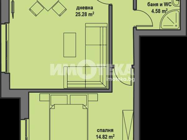 Предлагаме Ви двустаен апартамент в затворен комплекс. Разпределен е по следният начин: коридор, дневна с кухненски бокс, спалня, баня с тоалетна и тераса.