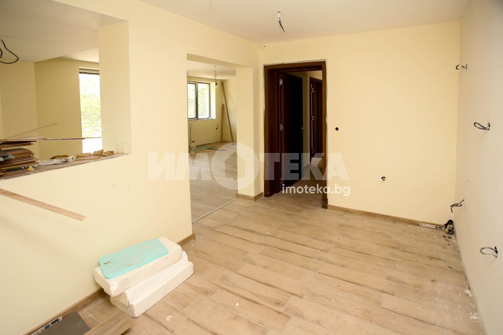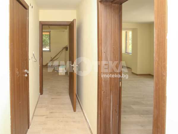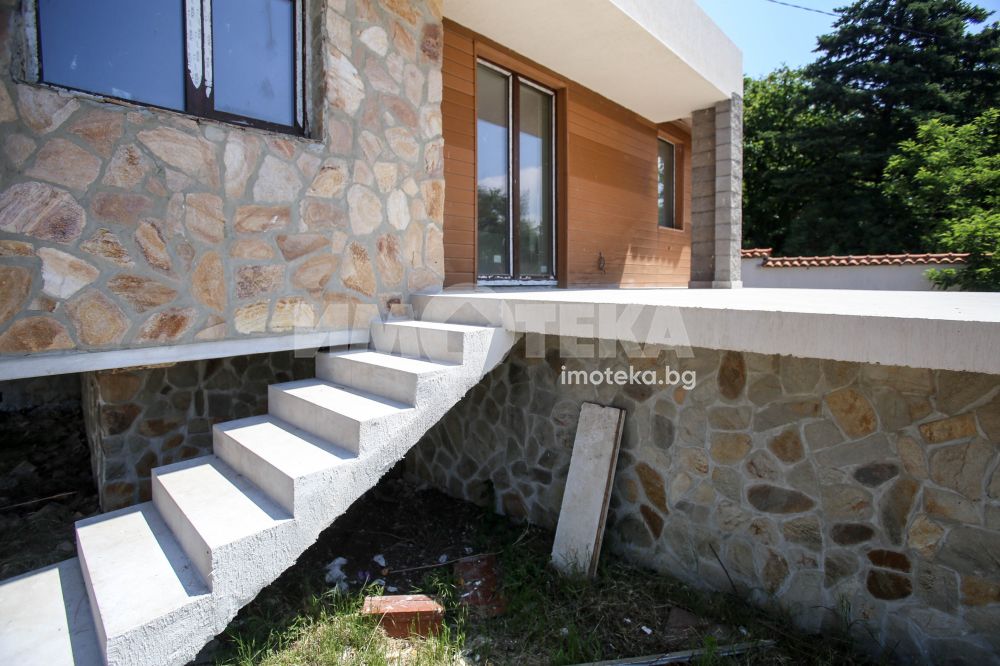Първи етаж-голямо входно антре,просторен хол с кухненски бокс с изкарани изводи за ток и вода,баня с тоалетна.Прилежаща веранда-около 20 кв.м.