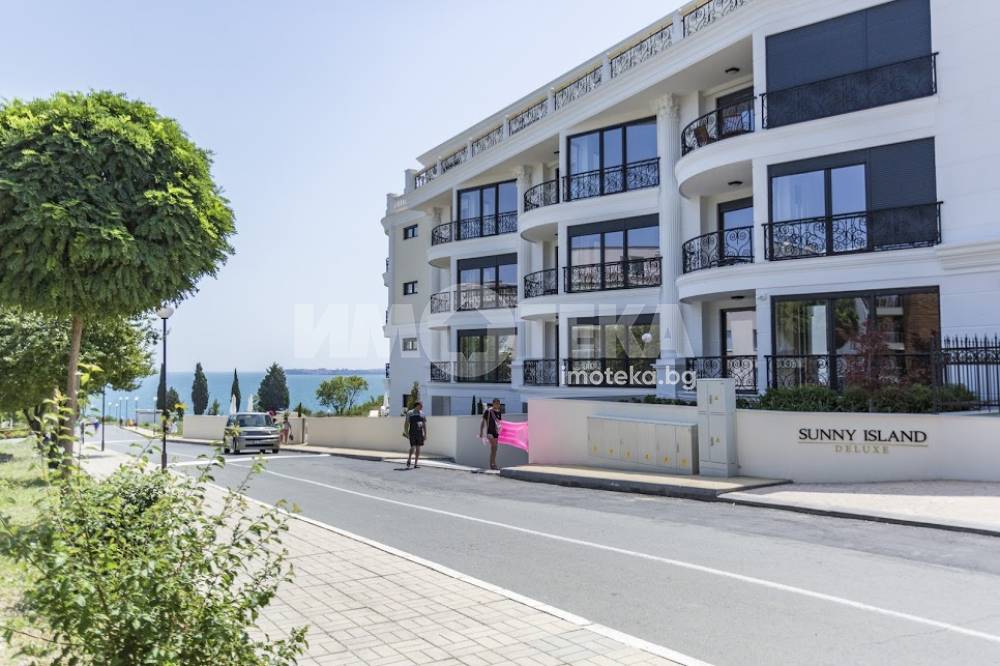 Сградата е проектирана в съвременен архитектурен стил и съобразена с уникалната гледка към остров Св. Иван и морето. Намира се в непосредствена близост в южна посока от к-с "SUNNY ISLAND ". От всички апартаменти се разкрива уникална морска панорама. Сградата се състои от 30 апартамента - студия, двустайни и тристайни апартаменти. Жилищата ще бъдат завършени на степен до ключ - под- ламинат, стени финно-шпакловани и боядисани с латекс, кухня /с вградени котлони, аспиратор, мивка с батерия и кранове/, баня и тоалетна напълно оборудвани, климатик.От външната страна на апартаментите към тераси, има монтирани италиански външни ролетни щори с дистанционно управление. ФАСАДА: - Натурален камък „Травертин“; 18 камерни тухли "Wienerberger", Австрия; Външна шпакловка; Хидроизолация по всички тераси и бани; Топлоизолация и хидроизолация по покрив и открити тераси; Външна изолация и хидроизолация; ОСТЪКЛЯВАНЕ: Петкамерна немска PVC дограма; Двоет стъклопакет 24 мм, тип "4 сезона"; Вътрешни и външни дъски под прозорците; Комбинирано отваряне във всяка стая; Италиански външни алуминиеви ролетни щори по прозорци и врати; ИНТЕРИОР: Вътрешните стени направени по съвременна технология, без гипсокартон, турбозолна гипсова шпакловка, латексна боя нанесена с помоща на специално устройство. Италиански гранитогрес в коридори, ламинат в спални и дневни; Кабелна телевизия; Интернет; Центральная домофонна система; Климатици „DAIKIN” клас А; Интериорни врати МДФ; Кухня – горни и долни шкафове, керамичен плот, аспиратор, мивка, батерия; БАНИ: фаянс и теракот в съвременен дизайн ; Оборудване – пълно оборудване /бойлер, сан. техника, мивка, душ-кабини; Сградата е приета с Акт 16. На територията на комплекса има: подземен паркинг, басейн, дет. площадка, зона барбекю, зона за отдих. Цените на апартаментите се договарят индивидуално с клиента, в зависимост от срок на заплащане, размер на първа вноска и др. Възможна е разсрочка до 1,5 години.