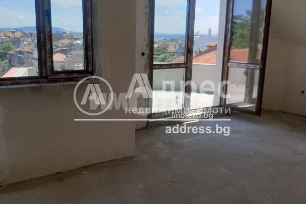 Продава АПАРТАМЕНТ до Турското консулство на VI етаж с изложение юг-запад, състоящ се от антре с коридор, дневна с кухня, баня с WC, спалня и килер, със застроена площ от 68,38 кв.м., ведно с таванска стая - килер с площ от 13,72 кв.м., в едно с 9,30 кв.м. ид. ч. от общите части на сградата. Има и открити части, които се оформят като допълнителна площ към апартамента. Апартамента е в степен на завършеност на тапа, с шпакловани стени и тавани и монтирани врати. Външната дограма е PVC шесткамерна, двуосово отваряема, с троен стъклопакет от високо емисионни стъкла Ка + Б + 4 Сезона. В дневната, освен обикновени прозорци и витрини гледащи на юг към бургаския залив, на запад, над кухненската част, на височина над изправен човешки ръст има и монтирана капандура с покривен прозорец Site Premium Anthracite, от който може да се наблюдава и небето. Сградата е НЖСК с висока степен на завършеност, с модерен пневматичен асансьор и общи части. Нова, модерна сграда, с по два апартамента на етаж, разположена на тиха улица, в най-престижната част на града, в непосредствена близост от само 150 метра до морската градина на гр. Бургас, като улицата излиза на заведението „Чадъра“ в района на летния театър, в най-старата и най-развитата част на морската градина между района на Пантеона, приказният детски кът с увеселителен парк и морското казино с терасата над бургаския мост, които водят до огромната пясъчна ивица на бургаския плаж. Има към двете нива има допълнителна площ, която се оформя към тях. И двете нива имат самостоятелни входове и комуникации и могат да се ползват като отделни апартаменти. И от двете нива има неповторима ГЛЕДКА КЪМ МОРЕТО И СТАРАТА ЧАСТ НА МОРСКАТА ГРАДИНА , чието изграждане е започнало 1889г. и продължава и до днес и със своите алеи, склуптури и стотици видове екзотични и традиционни растения, от всички континенти, е обявена за паметник на парковото изкуство