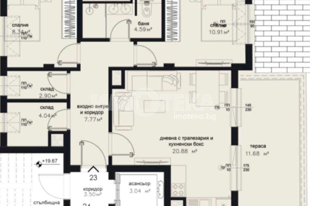 Модерна жилищна сграда „ЦЕНТЪР 1“ с 1 вход на 8 етажа, проектирана е с 24 апартамента, подземен гараж с 26 паркоместа, озеленен двор с детска площадка. Дизайнерска визия с изчистени линии, големи прозорци, кокетни балкони с декоративни парапети от алуминиеви профили и закалено стъкло. Комбинирана фасада от силикатна минерална мазилка в бяло и сиво. Проектирана е с функционални двустайни и тристайни апартаменти.Изложение на жилищата: запад /изток. Хидравличен пътнически асансьор KONE. Двуцветна трикамерна ПВЦ дограма с троен стъклопакет/“Четири сезона“ и к-емисионно стъкло/. Отопление и топла вода на ТЕЦ с монтирани разводки за климатици в дневните. Охранителна система с видеонаблюдение, осветление с датчици за движение, видеодомофонна система и контрол на достъп.Жилищата се предават на фина мазилка и замазка с монтирана блиндирана входна врата. Ел. инсталация-монтирани ключове, контакти, фасонки, индивидуално апартаментно ел. табло със съответните токови кръгове и автоматични предпазители на "LEGRAND”. Водопроводна инсталация - хоризонтална и вертикална до тапа и монтирани индивидуални водомери с дистанционно отчитане. Вътрешна канализация - хоризонтална и вертикална до тапа. Топлопроводна инсталация- хоризонтална и вертикална с монтирани радиатори и термоглави. Инсталация за кабелна телевизия, интернет и телефон. Етап на строителство: В строеж ! Разрешени за ползване -Декември 2024г. Доказан инвеститор с качествени сгради в гр.София.
