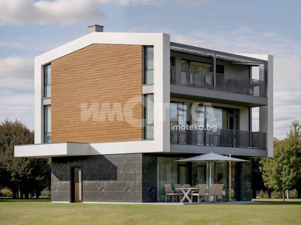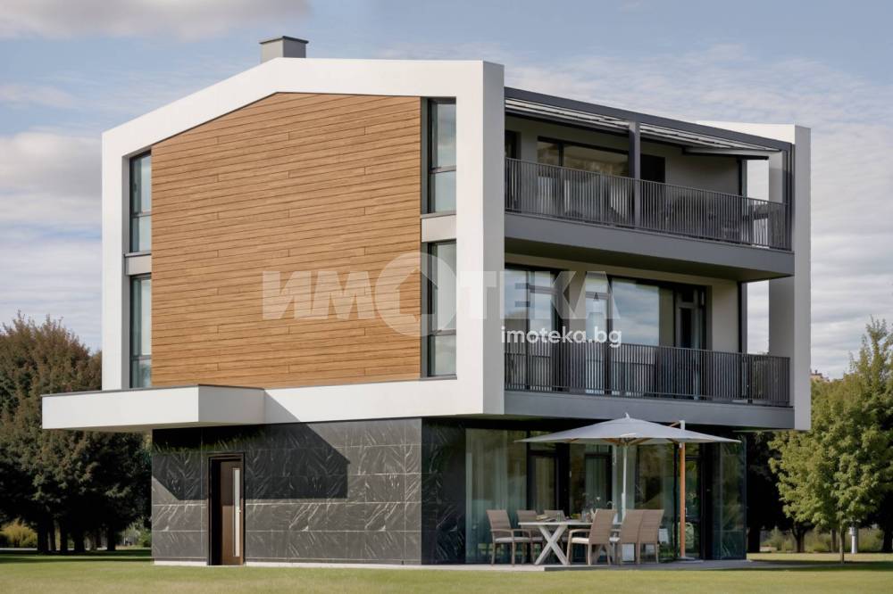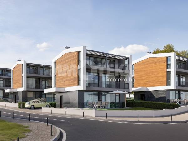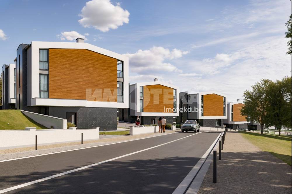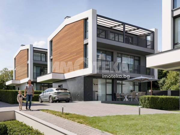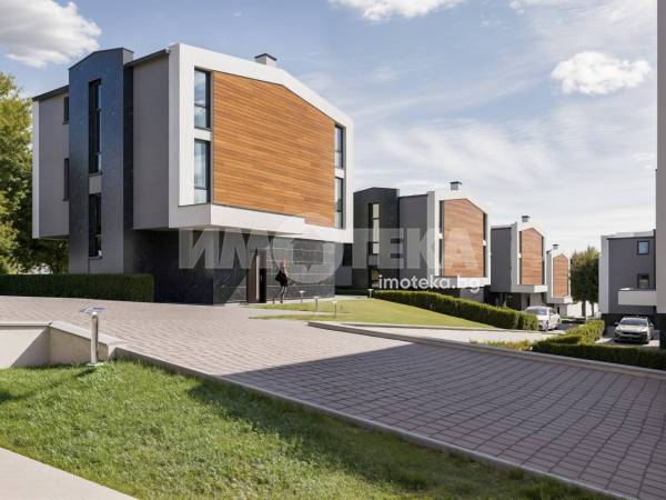 Къща в затворен комплекс с 4 спални и самостоятелен двор с площ от 295кв.м. Има следното разпределение: