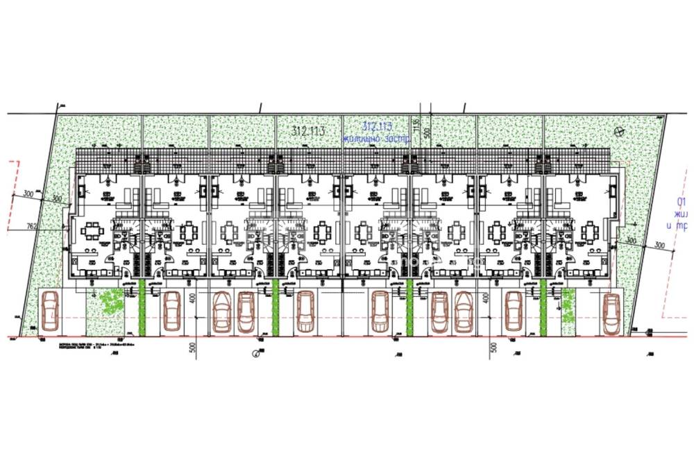 Предлагаме Ви 6 броя двуетажни къщи, находящи се в квартал Коматево, м-ст "Гуджуците". Къщите са на калкан с изложение изток -запад, разполагат с двор - 110 кв.м., като в едната част - 37 кв.м. от двора са разположени две паркоместа и зелени площи. Другата страна на двора с площ 73 кв.м. разполага с веранда и зелени площи.