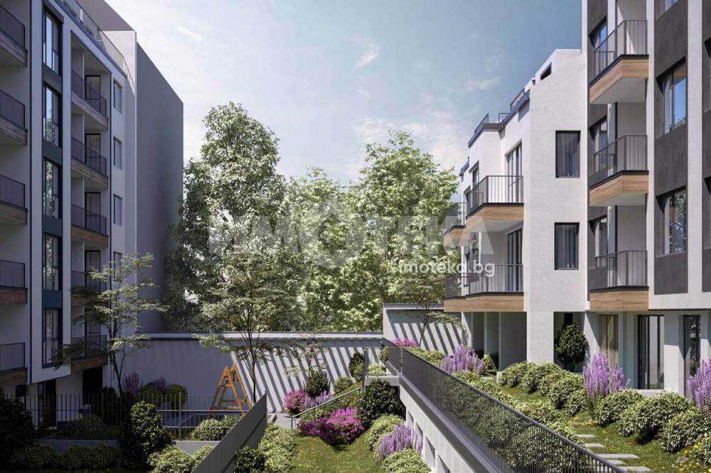 Междублоковото пространство е изцяло озеленено и оформено като приятна зона за отдих с алеи, пейки и детска площадка, което създава спокойна и уютна среда за живеене, подходяща както за семейства, така и за инвестиция.