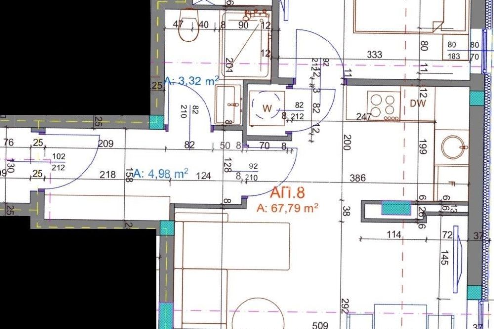 Апартамента се състои от: входно антре, хол с кухненски бокс, спалня, баня с тоалетна, мокро помещение или втора тоалетна и 2 тераси.