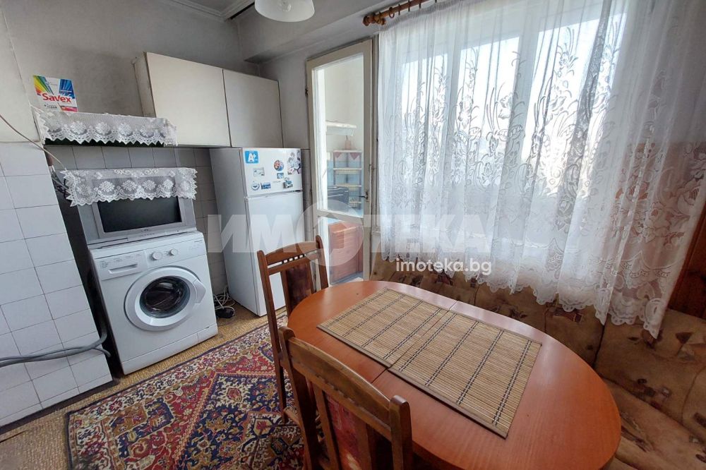 Двустаен панелен апартамент, напълно обзаведен и оборудван с електроуреди. Състои се от три отделни стаи: кухня, хол, спалня, две тераси и санитарен възел. Отдава се за дългосрочно.