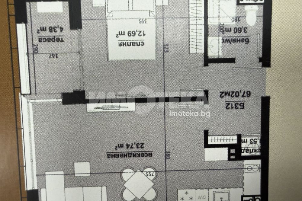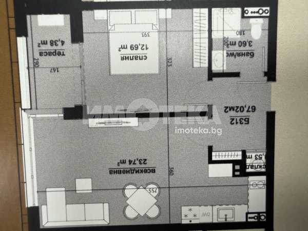 Представяме ви един изцяло вътрешен просторен двустаен апартамент с площ от 67кв.м. на среден етаж.
