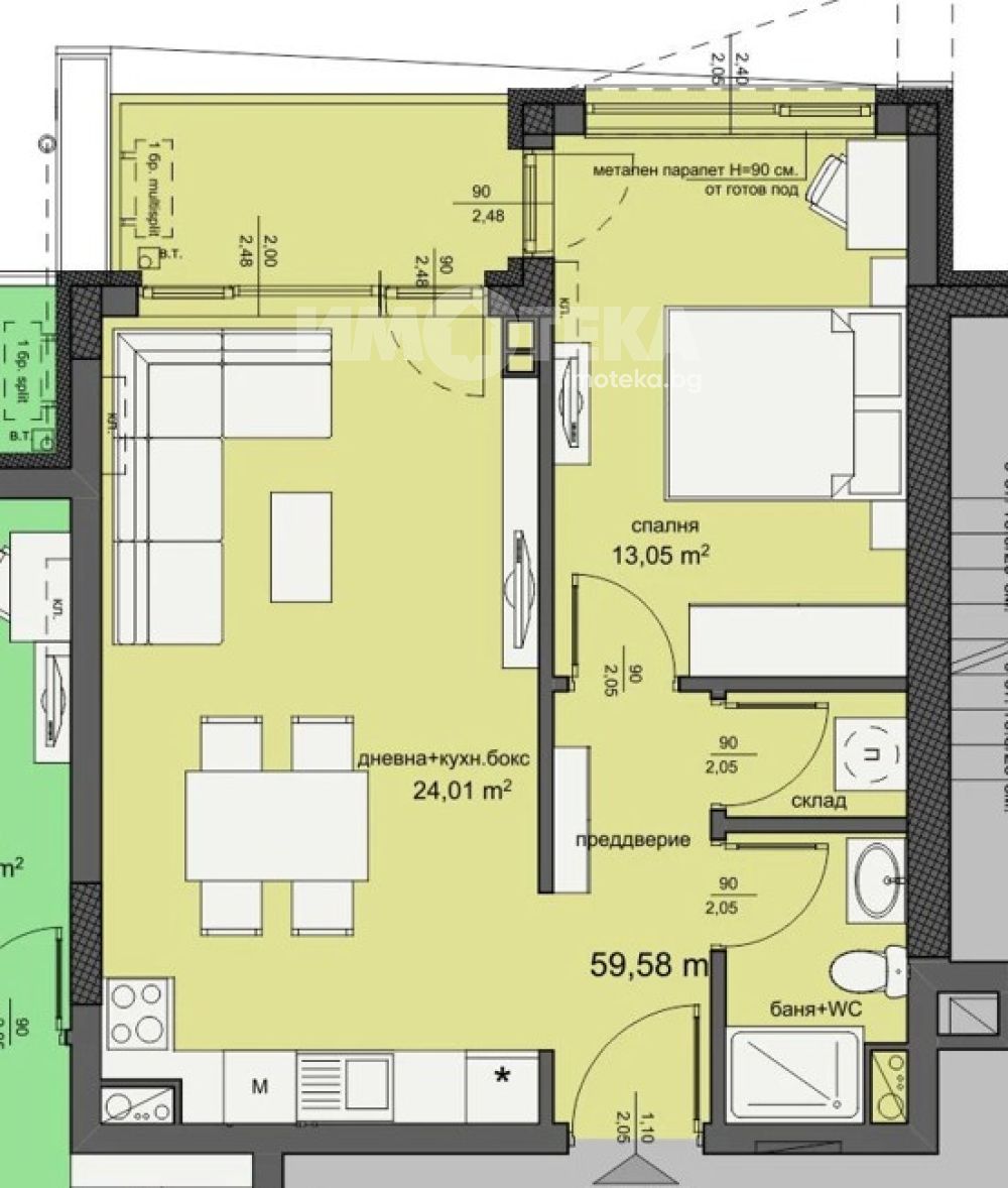 Простор и естествена светлина благодарение на тавани със средна височина от 2.90 м