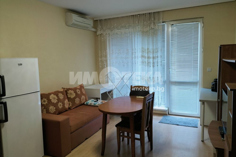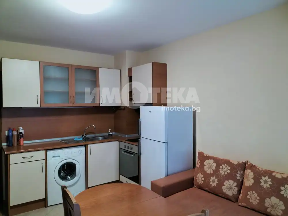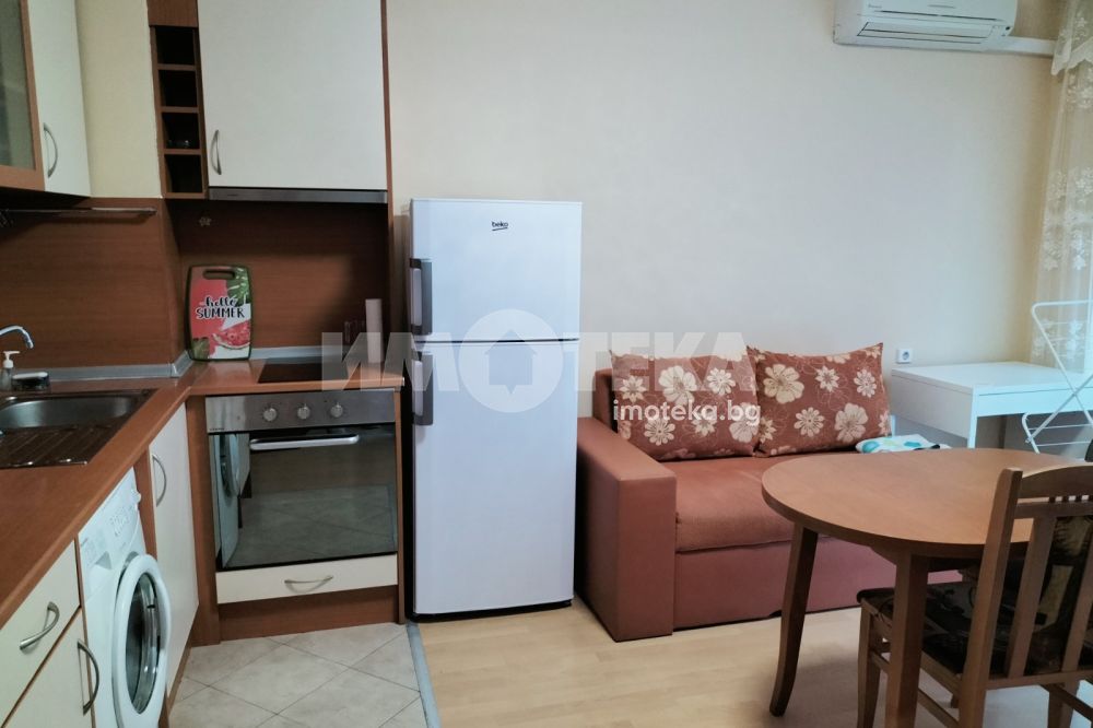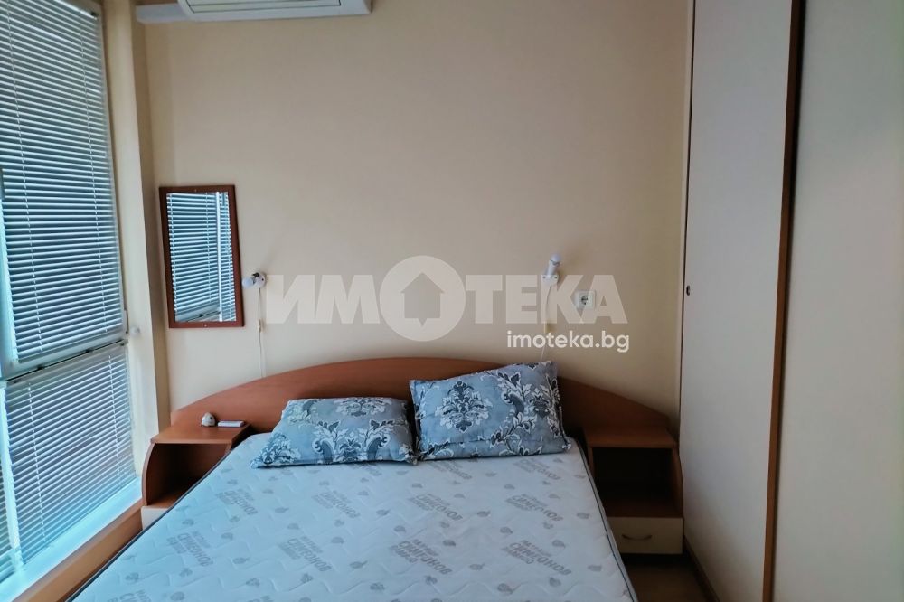 Стилен двустаен апартамент в най предпочитаната зона на Бургас с площ 58 кв.м. Жилището се състои от входно антре, баня с тоалетна, изцяло оборудвана кухня с трапезария с излаз към тераса и уютна спалня с тераса. Апартаментът е напълно обзаведен с мебели и уреди, елегантно декориран и много поддържан. Отоплението е на климатици. Изключително светло, компактно и функционално жилище снабдено с всичко необходимо, за да се нанесете веднага.