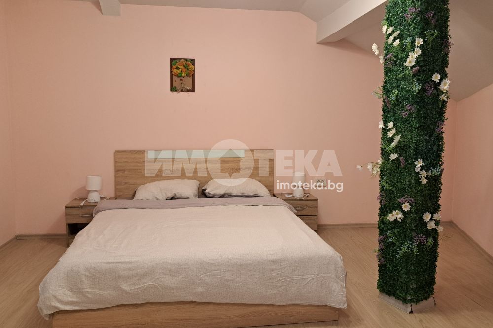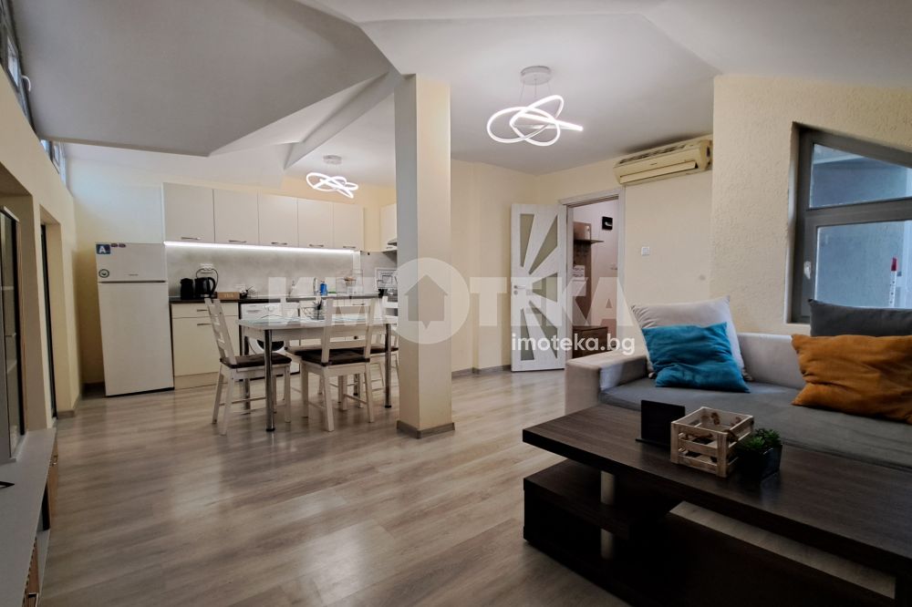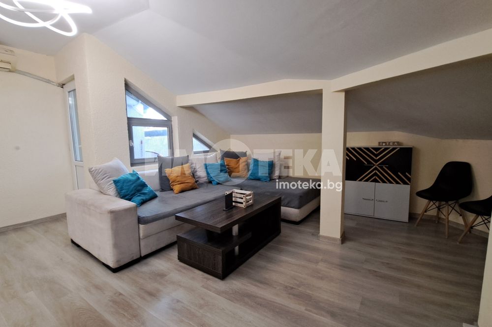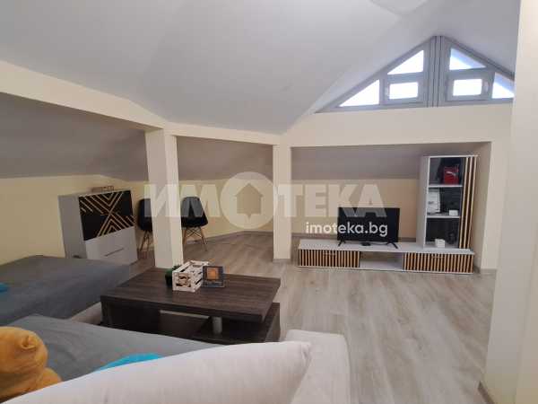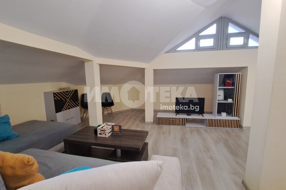 Апартаментът се отличава с интересна архитектура тип “мансарден стил”, големи площи и модерно обзавеждане. Помещенията са уютни и функционално оформени, с красиви детайли и декоративни акценти, които създават истинска домашна атмосфера.