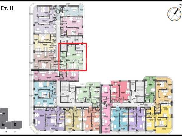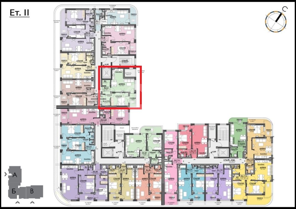 Двустаен апартамент с площ 73,39 кв. м., етаж 2 от 10, асансьор.