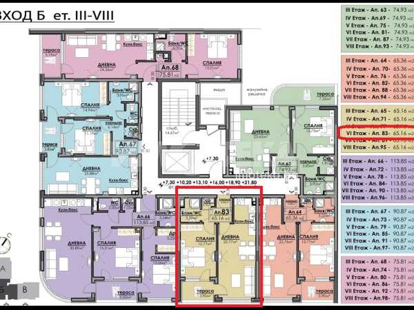 Двустаен апартамент с площ 65,16 кв. м., етаж 6 от 10, асансьор.