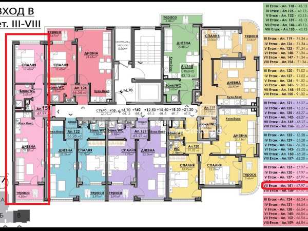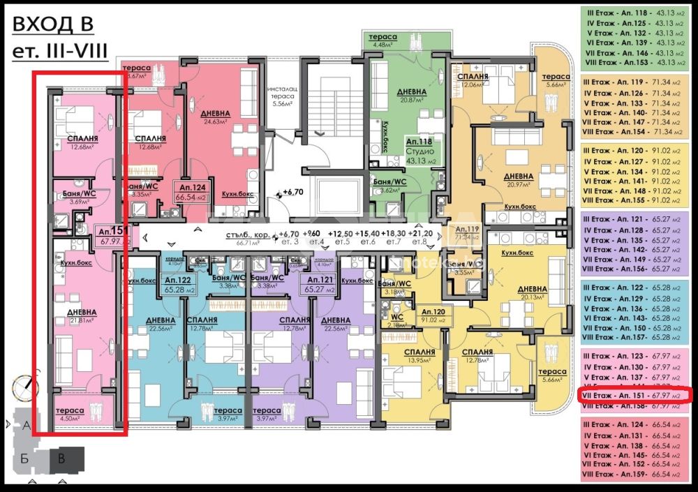Двустаен апартамент с площ 67,97 кв. м., етаж7 от 10, асансьор.