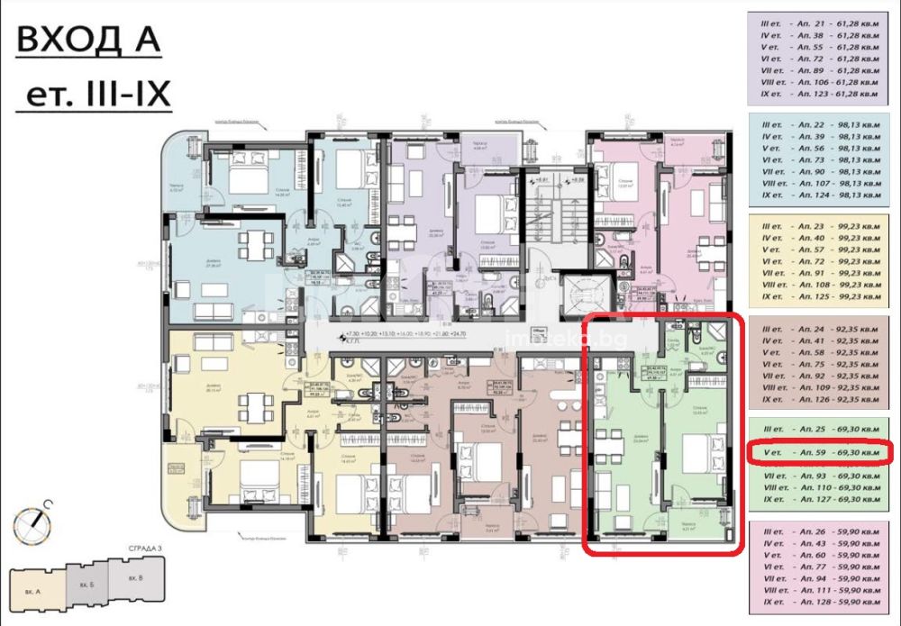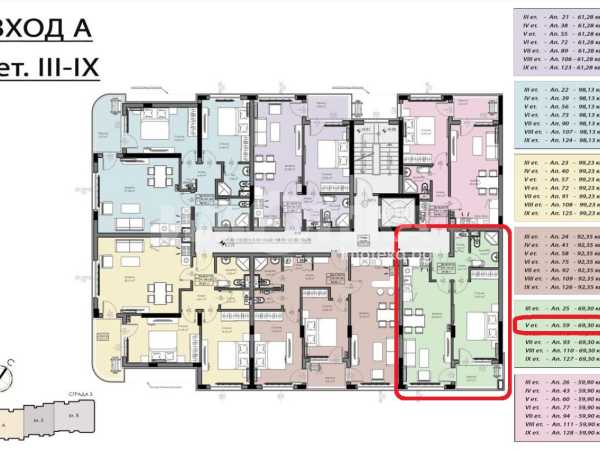 Площ на имота 69,30 кв. м., етаж 5 от 10, асансьор. Завъшва се до степен ТАПА.