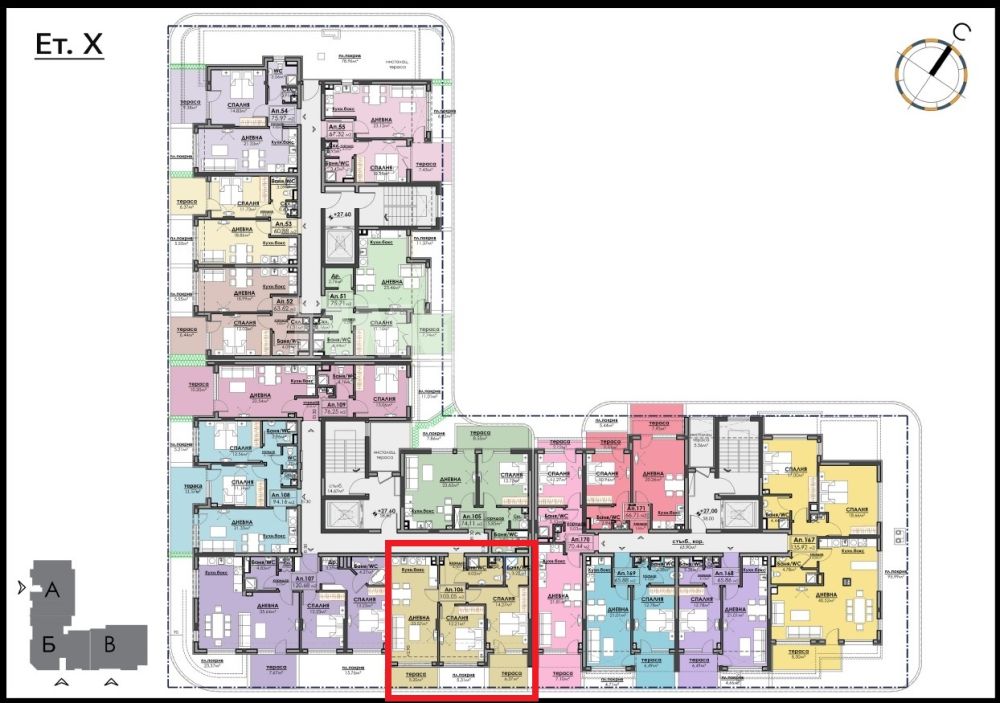 Тристаен апартамент с площ 103,05 кв. м., етаж 10 от 10, асансьор.