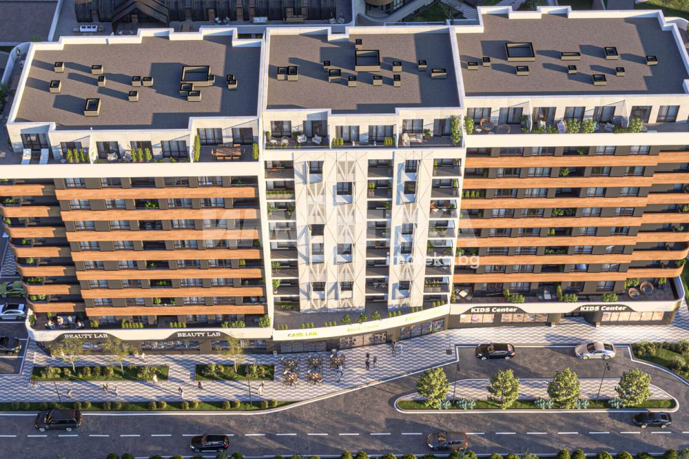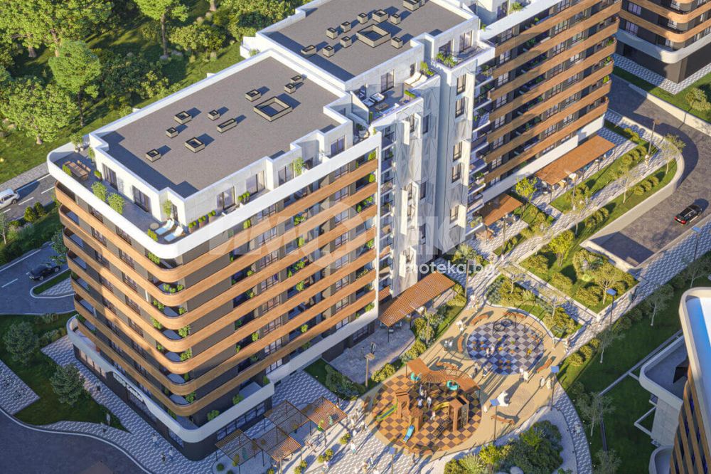 Състои се от антре, дневна с кухненски кът и трапезария и спалня с обща тераса, спалня, склад и баня с тоалетна.
