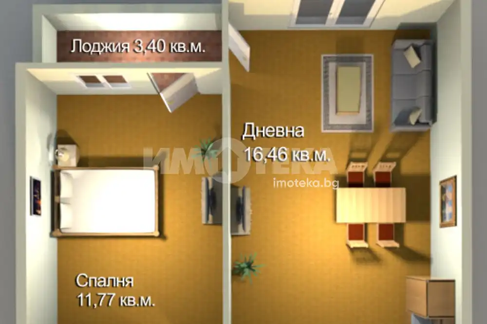 Предлагам Ви двустаен апартамент за продажба, със следното разпределение: Входно антре, Хол с кухненски бокс, спалня, баня с тоалетна и тераса.