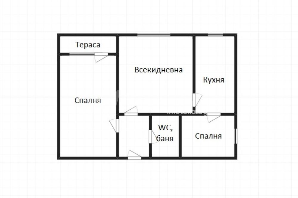 Състои се от: хол, две спални, кухня, баня с тоалетна, антре, тераса.