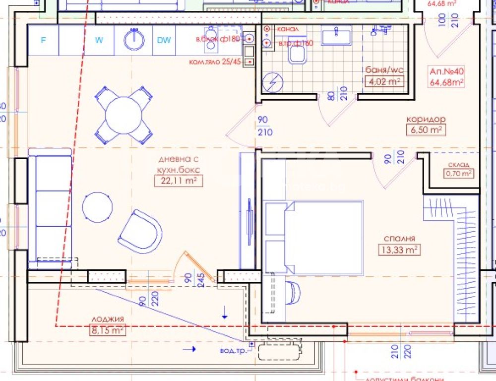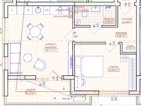 Двустаен апартамент в Жилищна сграда „Хоризонт“ с гъвкави схеми на плащане с възможност за разсрочване. С площ от 73.87 кв.м. на етаж 5. Състои се от дневна с кухня, спалня, баня с WC, коридор и тераса.