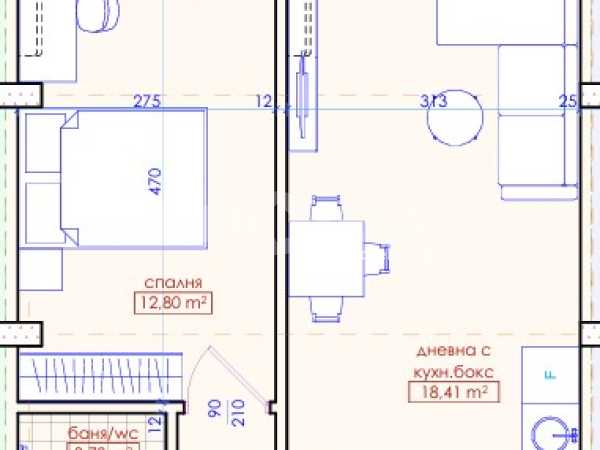 Двустаен апартамент в Жилищна сграда „Хоризонт“ с гъвкави схеми на плащане с възможност за разсрочване. С площ от 63.99 кв.м. на етаж 6. Състои се от дневна с кухня, спалня, баня с WC, коридор и тераса..
