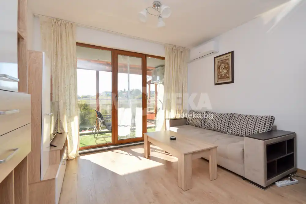 Ексклузивно от Адрес Недвижими имоти! Предлагаме Ви за продажба двустаен апартамент състоящ се от входно антре, баня с тоалетна, всекидневна, спалня и просторна южна тераса. Апартаменгта се продава след основен ремонт, напълно обзаведен и оборудван готов за нанасяне.