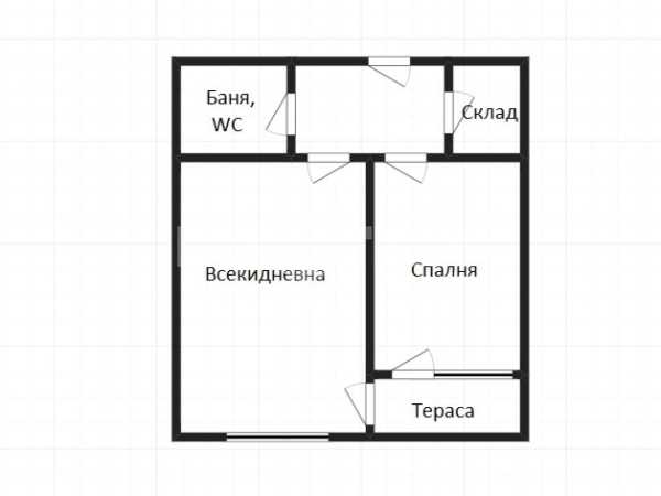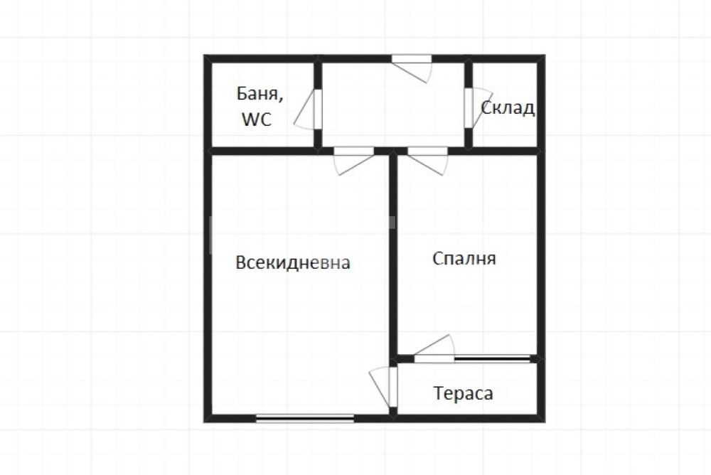 Състои се от , антре , хол с кухненски бокс , спалня , баня с тоалетна , склад и една тераса.