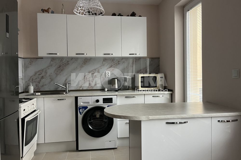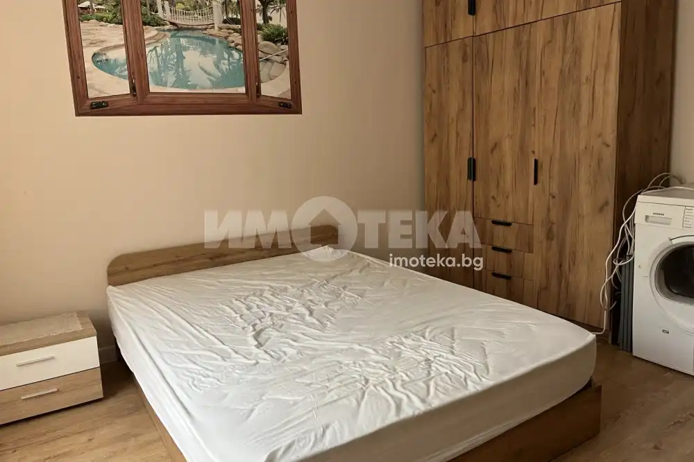 Двустаен апартамент в новопостроена сграда с площ от 72 кв.м., състои се от една спалня, всекидневна с трапезария и кухня. Жилището се продава напълно обзаведено с нови мебели. Подови настилки теракот и ламинат.