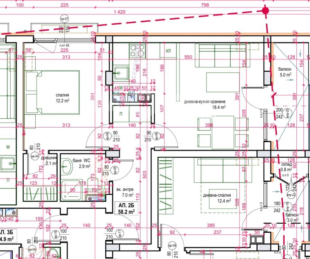 СГРАДА СЕЛЕНА е проектирана за изпълнение в 6 етажа с два отделни входа с 58 бр. апартаменти и съответстващият им брой паркоместа, както има и предвидени складови помещения на партерен етаж. Паркирането е разпределено в външни и вътрешни паркоместа и гаражи Сграда селена съчетава съвременно звучене с изчистени линии.
