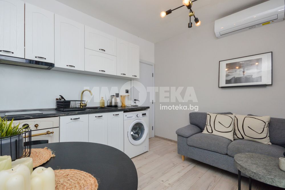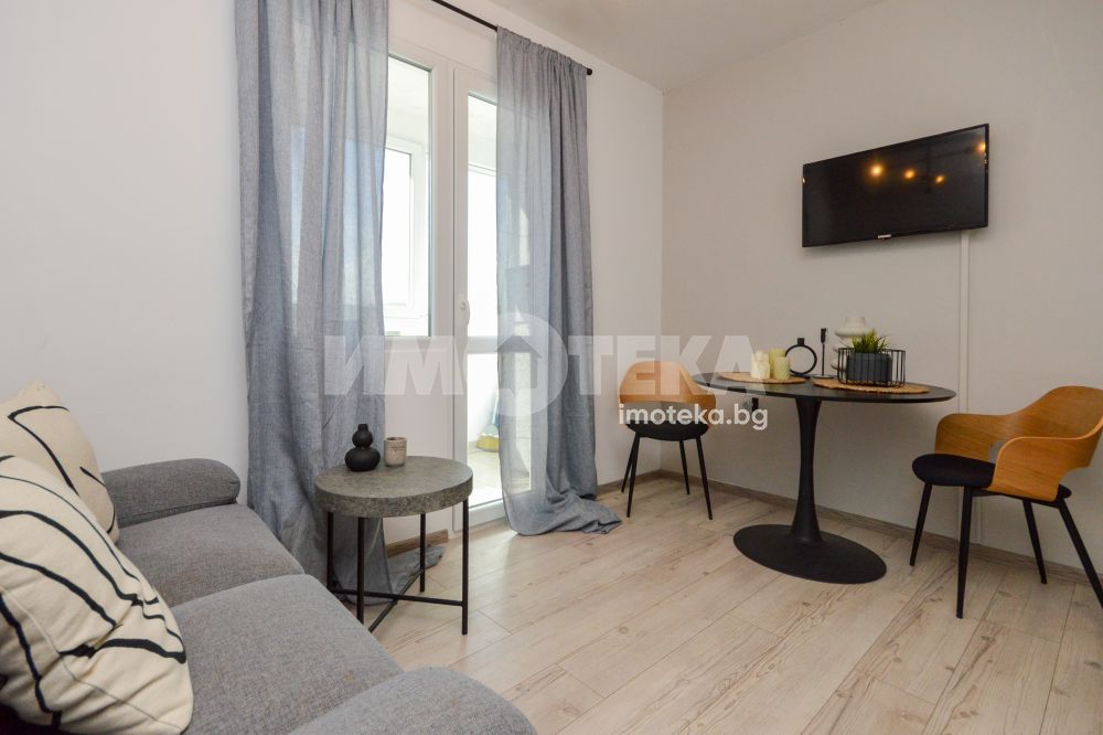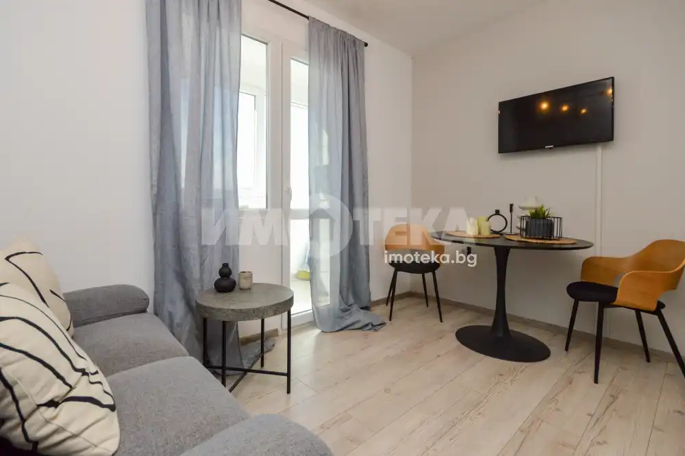 Адрес Недвижими имоти продава едностаен апартамент с отделна кухня /гарсониера/ с чиста - реална площ от 45.03 кв.м. Състои се от две отделни, непреходни стаи, коридор, баня с тоалетна и тераса. Апартаментът се предлага напълно обзаведен и оборудван в отлично състояние.