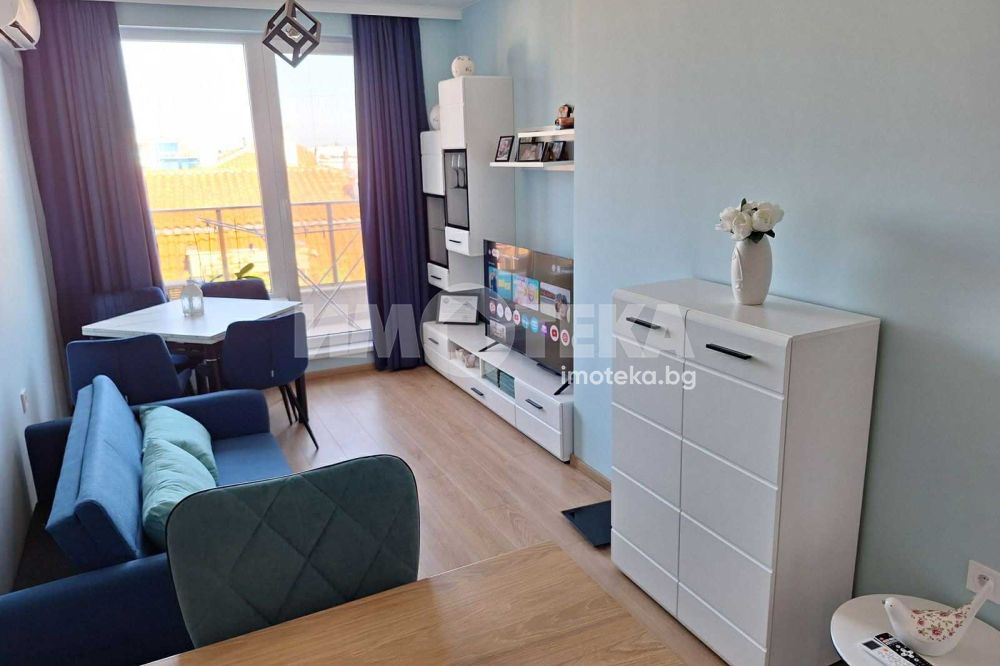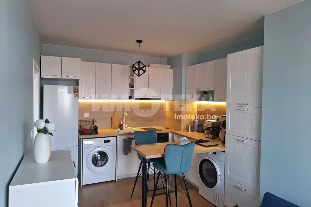 Стилен двустаен апартамент с ново обзавеждане и електроуреди, състоящ се от всекидневна с кухня, спалня, тераса и санитарен възел. Отдава се само дългосрочно.