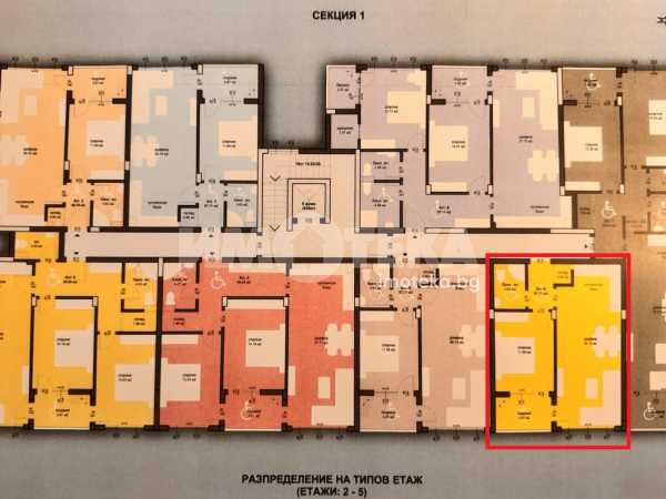 Площ на имота 65,36 кв. м., етаж 3 от 5, асансьор. Състои се от антре, дневна с кухненски кът и трапезария и спалня, като от двете помещения се излиза на тераса, баня с тоалетна и складово помещение.