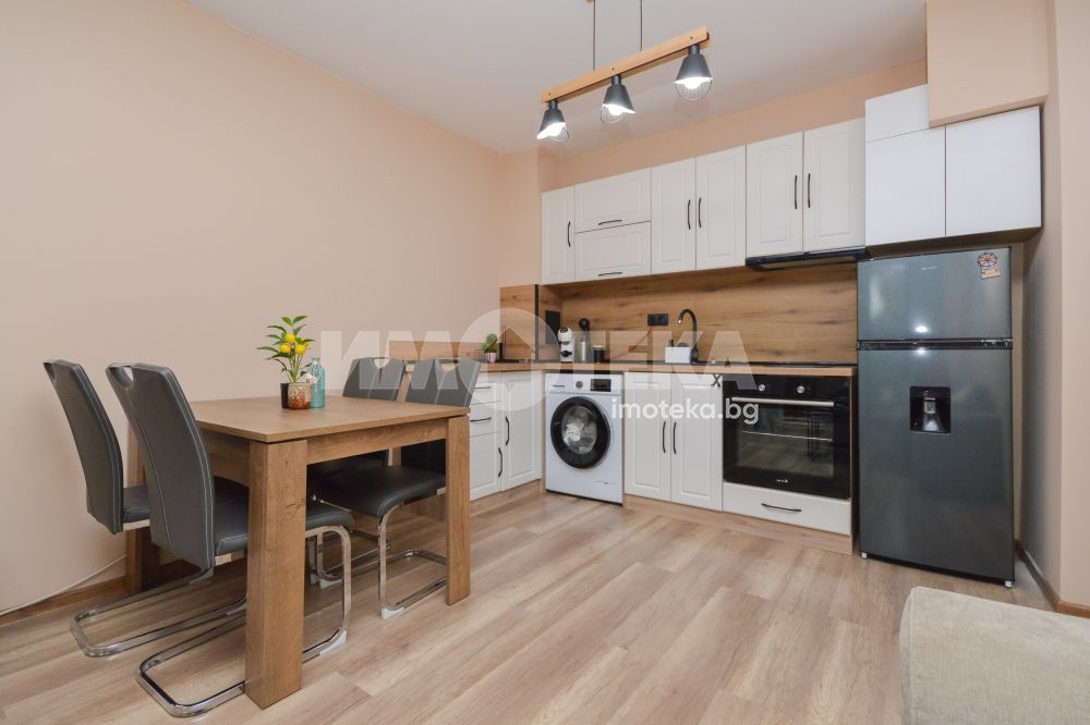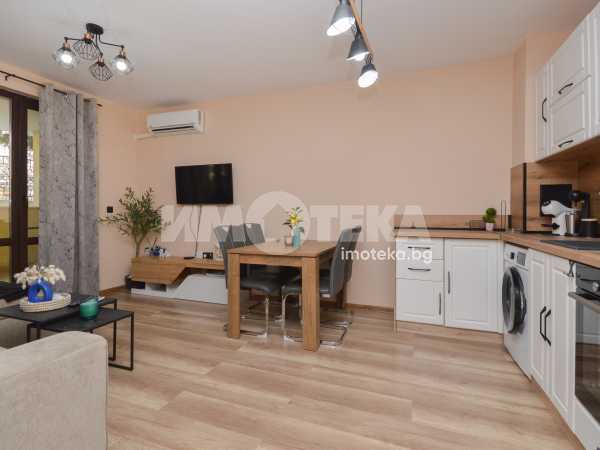• Просторна дневна с кухненски кът, напълно оборудван с всички необходими електроуреди