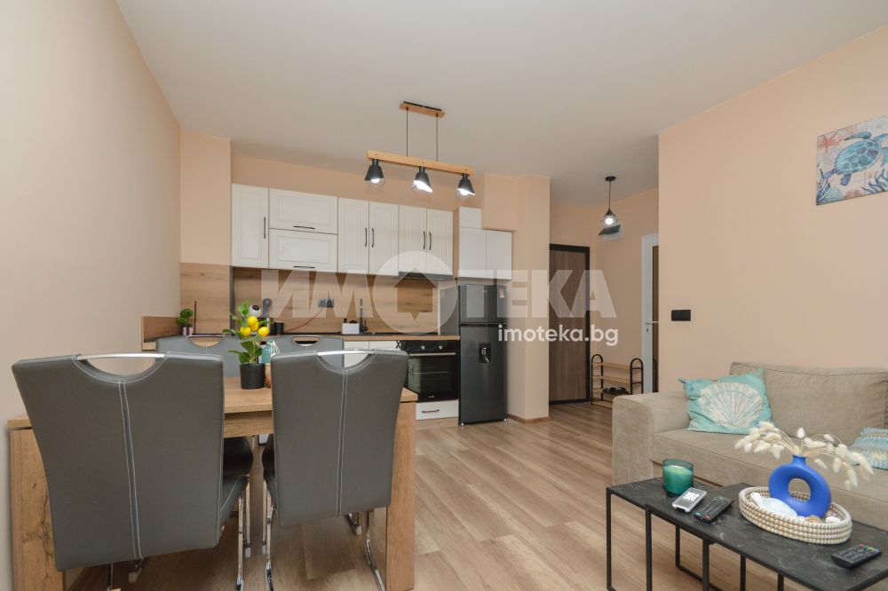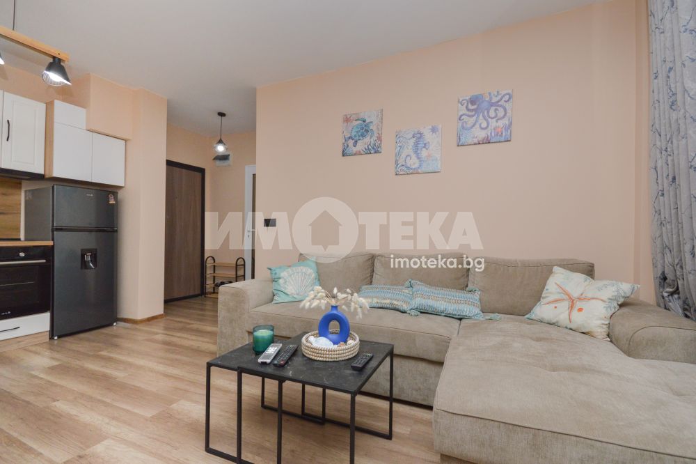 Предлагаме под наем стилен и отлично обзаведен двустаен апартамент, разположен в един от най-предпочитаните райони на гр. Бургас – кв. Сарафово, на първа линия море.