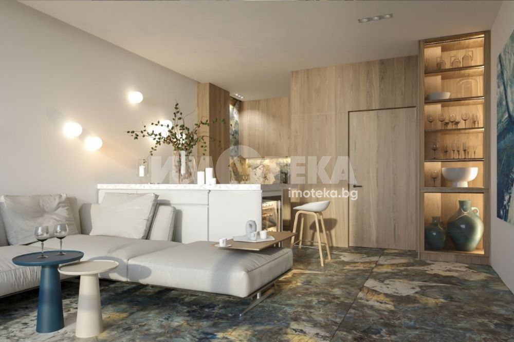 Жилищен комплекс в гр.Бургас, само на няколко крачки от морето, на първа линия море. Студио с гледка към морския хоризонт на първи етаж от три с площ 47,10 кв.м. Състои се от коридор, хол с кухненски кът, баня с тоалетна и тераса. Имотът ще бъде издаден до ключ с положено подово отопление в банята и кухненската зона.
