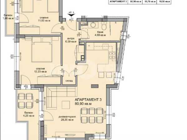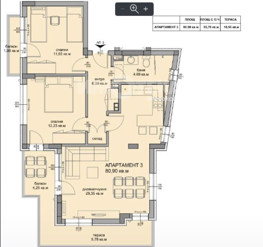 Площ: 96 кв.м Етаж: 3-ти от 4 Изложение: Запад