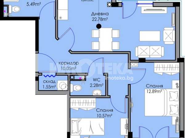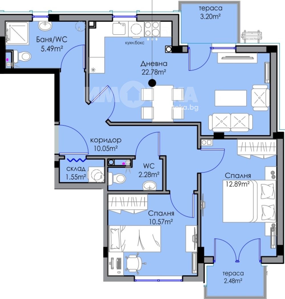 Прекрасни разпределения на двустайни и тристайни апартаменти.
