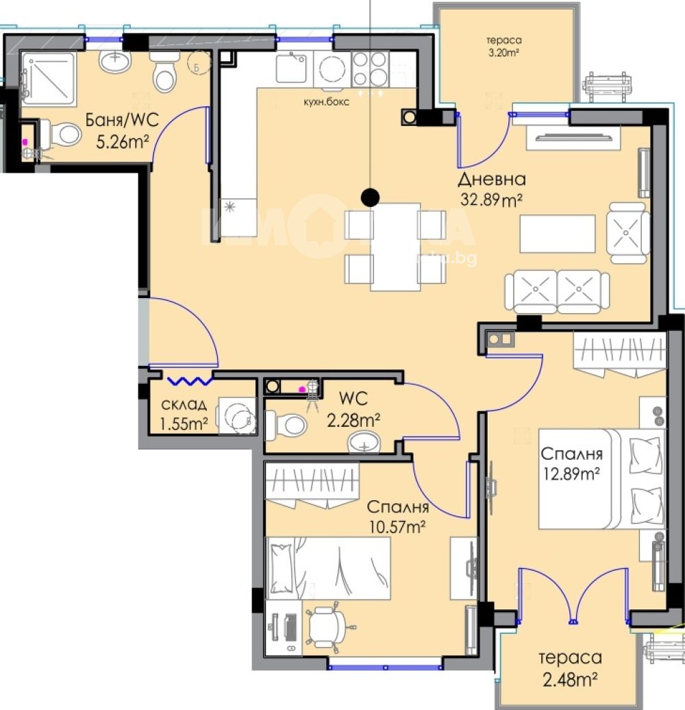 Прекрасни разпределения на двустайни и тристайни апартаменти.
