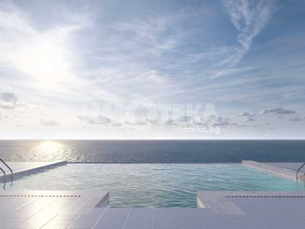 Жилищен комплекс в гр.Бургас, само на няколко крачки от морето, на първа линия море. Тристаен апартамент с гледка към морския хоризонт на втори етаж от три с площ 98,19 кв.м. Състои се от антре, дневна с кухненски кът, две спални, баня с тоалетна и две тераси. Имотът ще бъде завършен до ключ с положено подово отопление в банята и кухненската зона.