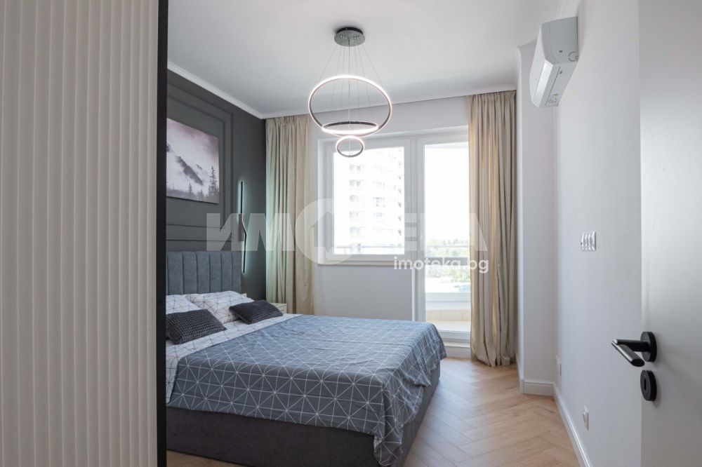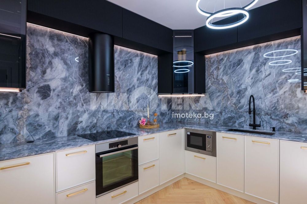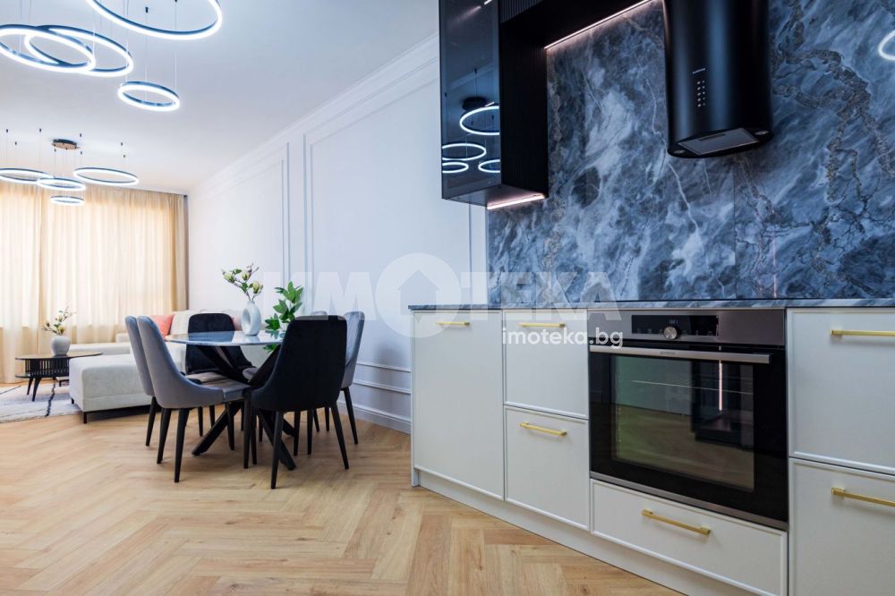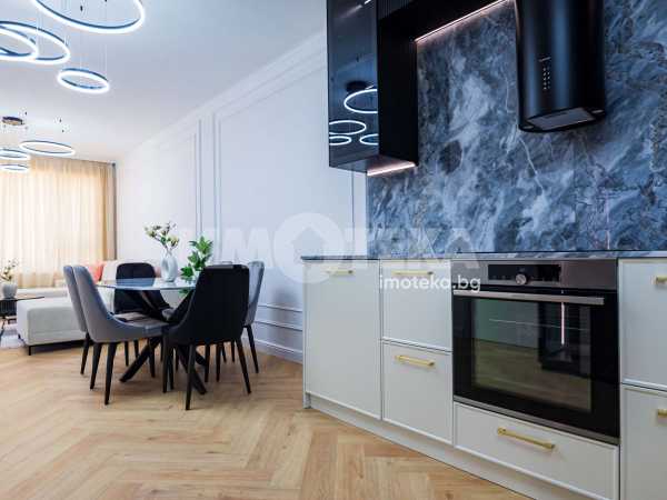 Просторен тристаен апартамент с невероятна гледка към парк ”Славейков”. Имотът е напълно обзаведен в неокласически стил и се състои от всекидневна 32 кв.м с луксозна кухня с плотове от естествен камък, висок клас вградени електроуреди и много екстри. Разполага с две спални, антре, две санитарни помещения, склад/мокро, невероятна тераса с гледка и удобно паркомясто включено в цената.