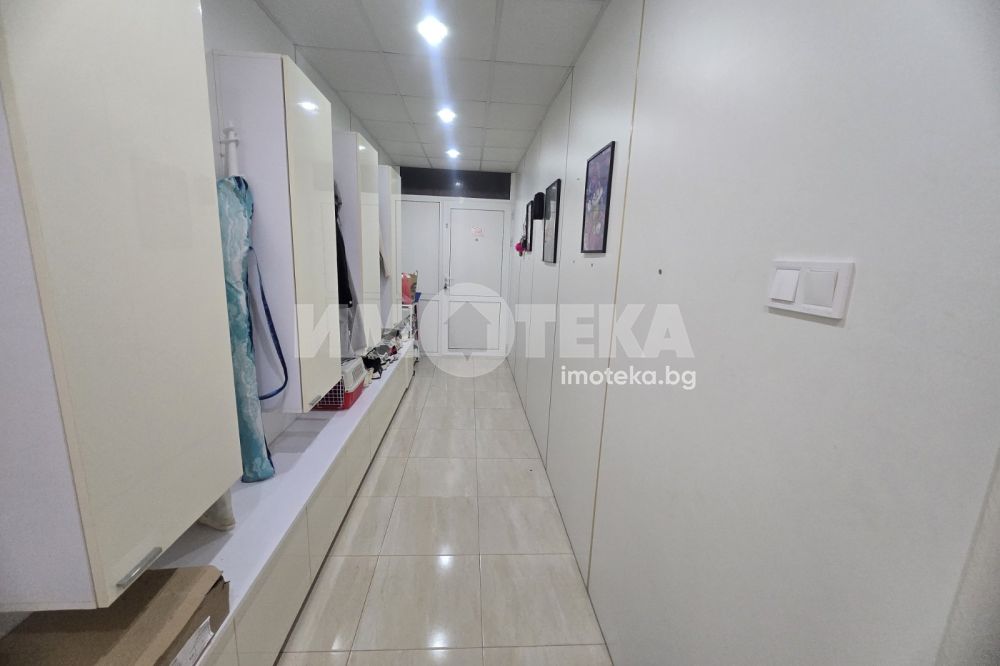 Имотът се намира срещу ВХТИ. ЕПК, етаж 1, площ 99 кв. м. + 16 кв. м. /усвоен коридор - използваем/. Състои се усвоен коридор. дневна, кухня, две спални, едната с дрешник, мокро и две санитарни помещения.