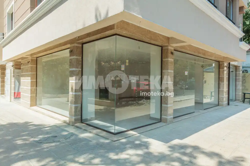 Ъглов магазин с голяма витрина на главен булевард с човекопоток. Подходящ е за всякакъв вид търговска дейност. Намира се в нова сграда със смесен тип предназначение, със статут на аптека. Предлага се необзаведен в състояние до ключ. Посочената цена е без ДДС.