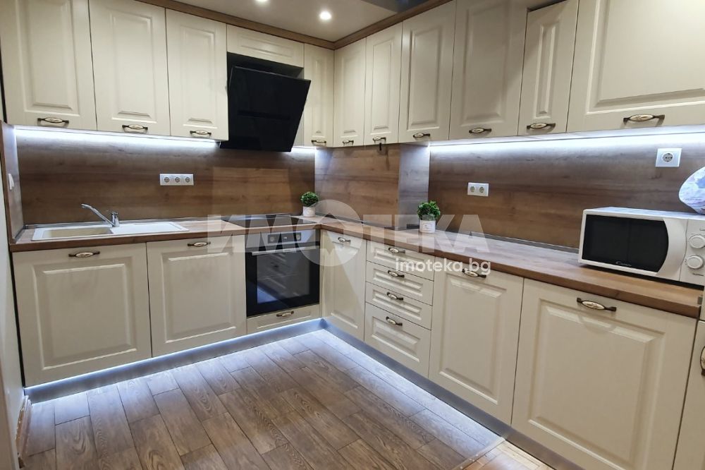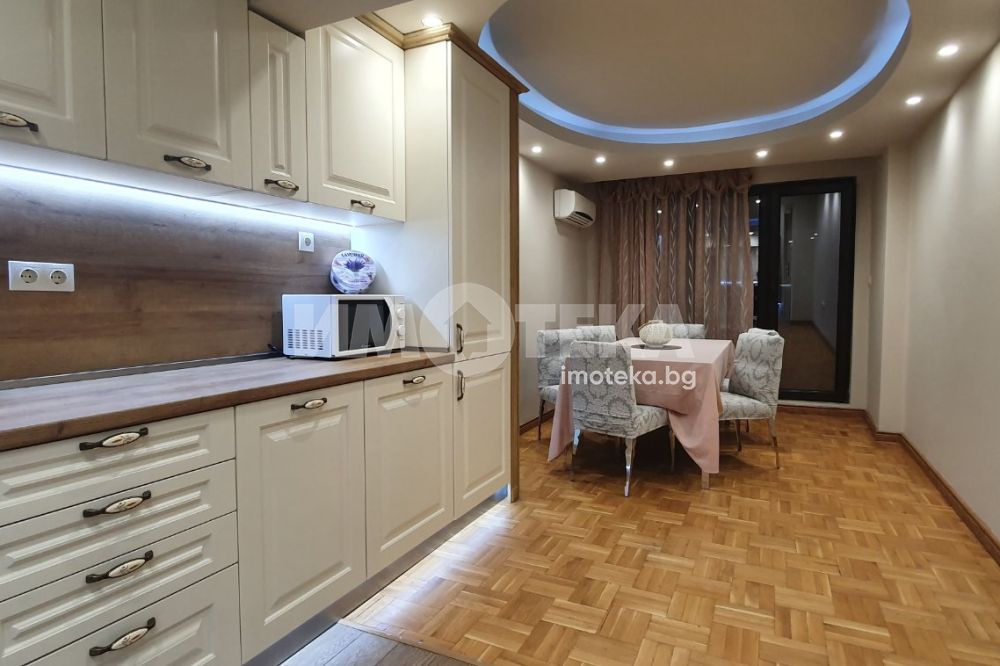 Тристаен луксозeн апартамент с площ от 120 кв.м., намиращ се в Идеалния център (в пресечна уличка на Александровска). Жилището се състои от просторен хол, отделно кухня, две спални с отделни санитарни възли и тераса. Имота е дизайнерско изпълнение- напълно обзаведен с всички нужни електроуреди. Помещението има изградена СОТ с-ма и във всяка стая има климатик.