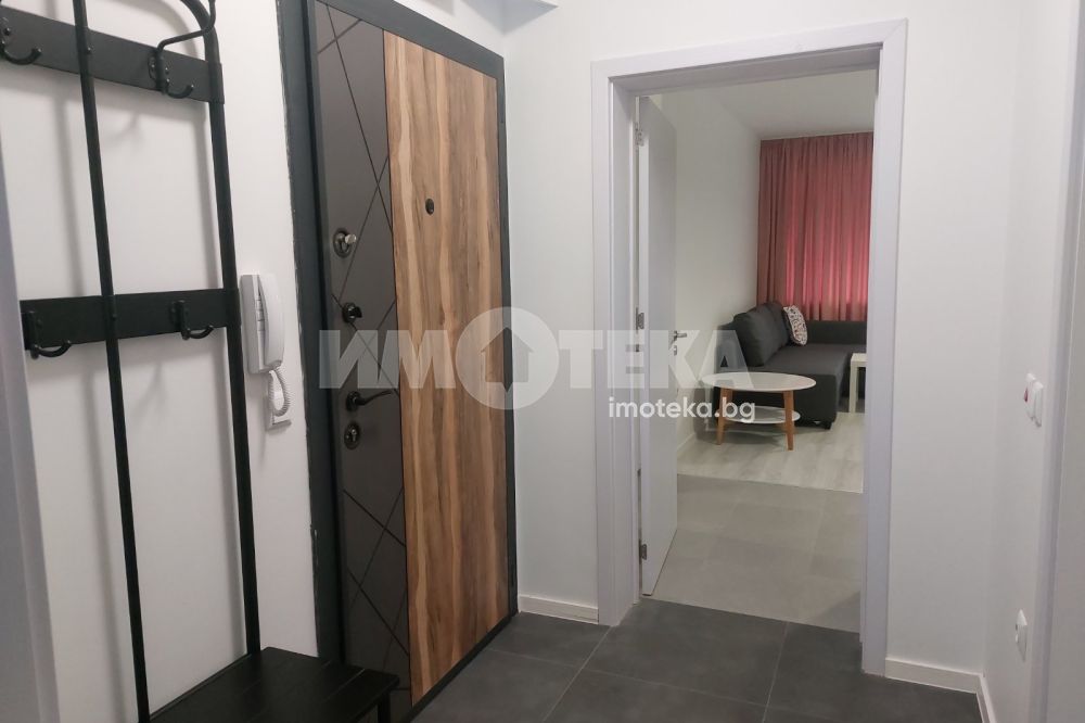 Чисто нов двустаен апартамент с ПАРКОМЯСТО! Адрес недвижими имоти отдава под наем двустаен апартамент в нова модерна сграда с контролиран достъп и видеонаблюдение. Състои се от просторна всекидневна с кухненски бокс, спалня, санитарен възел и тераса. Имотът е напълно обзаведен и оборудван с всичко необходимо, включително и съдомиялна, отоплява се с два климатика. Паркомястото е включено в наемната цена.
