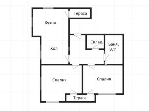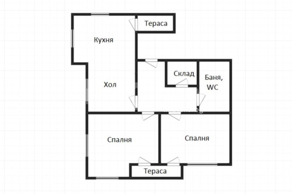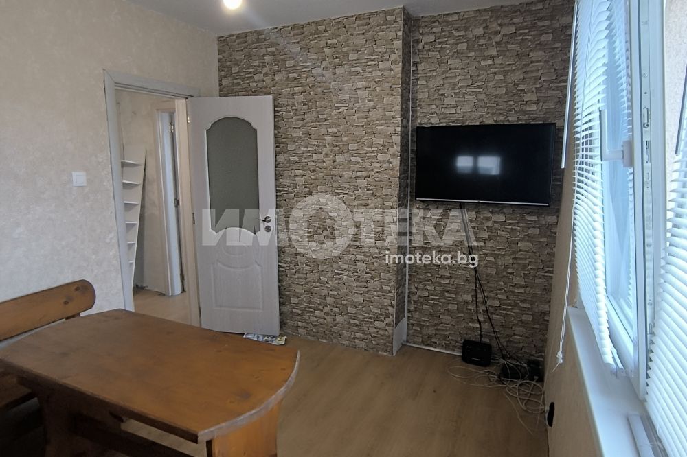 Имотът се състои от голямо входно антре, кухня с всекидневна, две спални, баня с тоалетна, мокро помещение и тераса на изток.