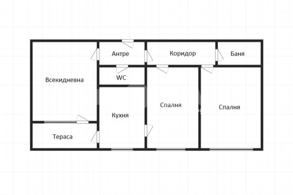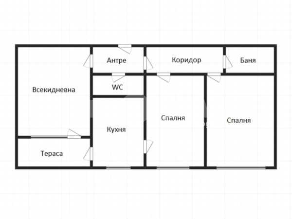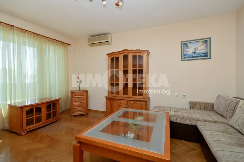 Състои се от: всекидневна, две спални, баня. отделно тоалетна, коридор, тераса.