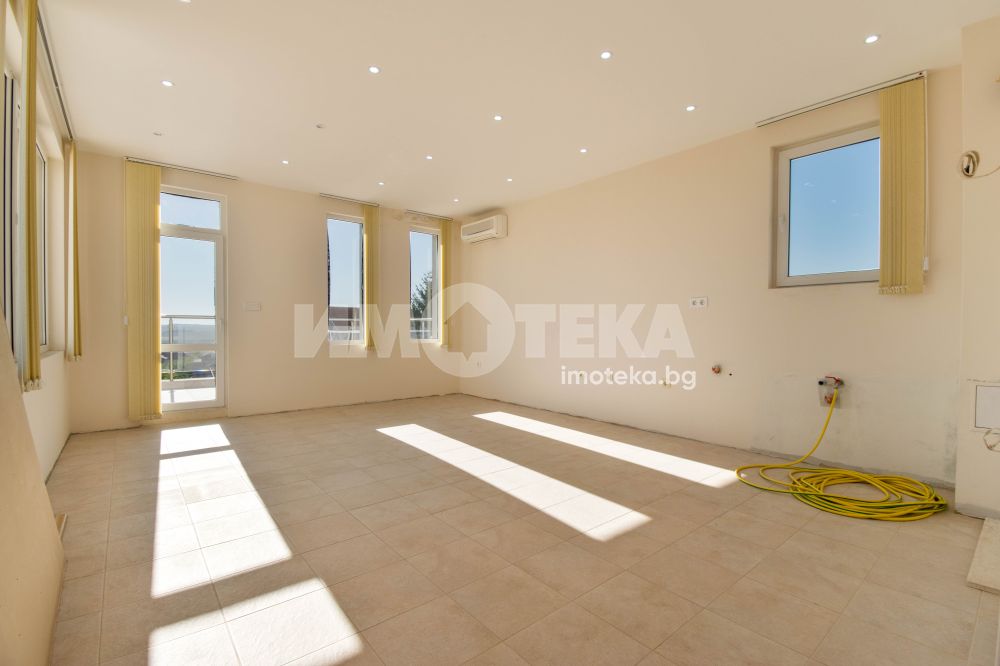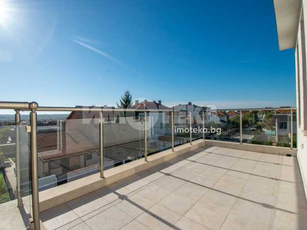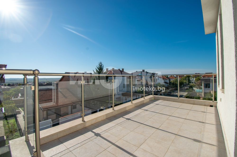 Етаж 2 - три спални едната от които със собствен санитарен възел и дрешник, втора баня с тоалетна, мокро помещение на етажа и две тераси.