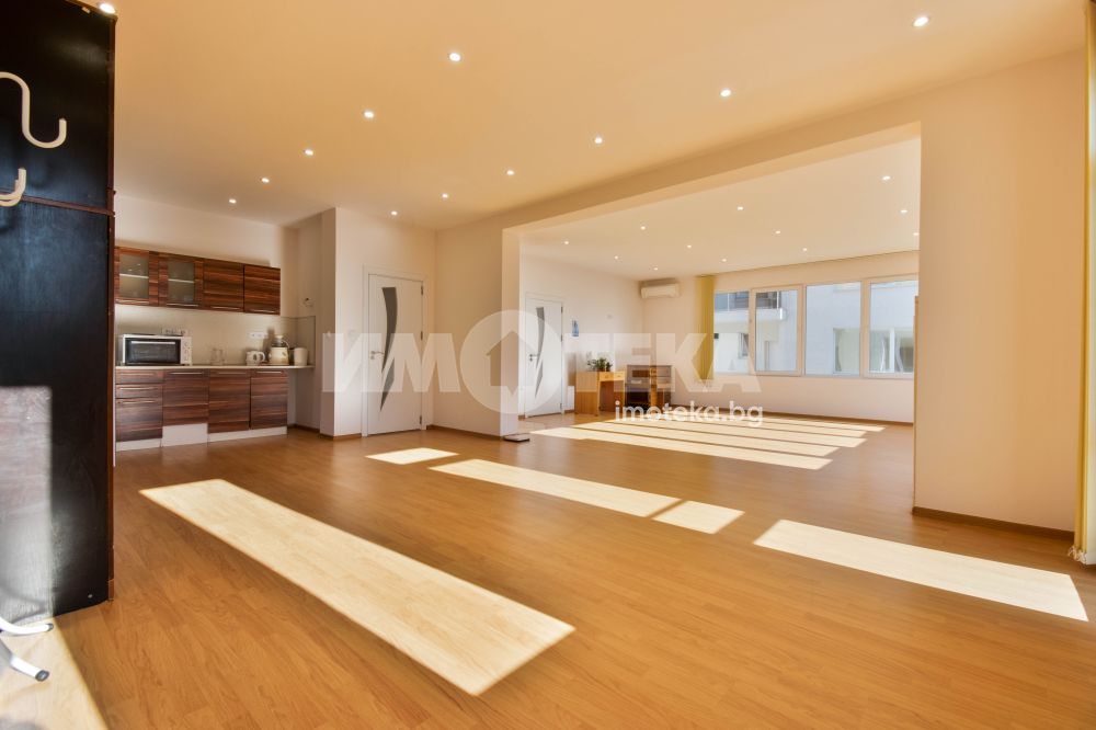 Етаж 1 - гараж, просторна дневна с трапезария и кухня, санитарен възел, помещение за бойлери.
