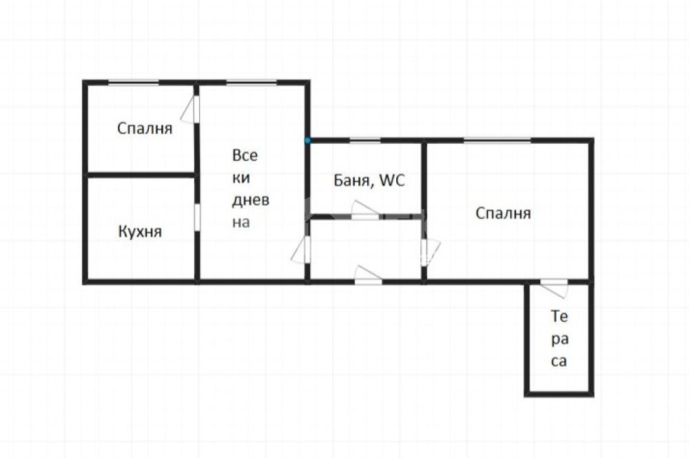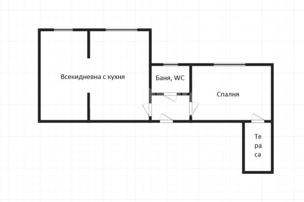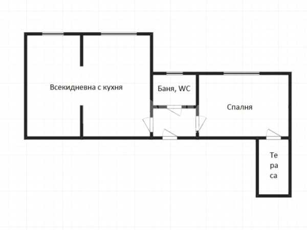 Етаж 2: Всекидневна с кухненски бокс, спалня, баня с тоалетна, тераса.