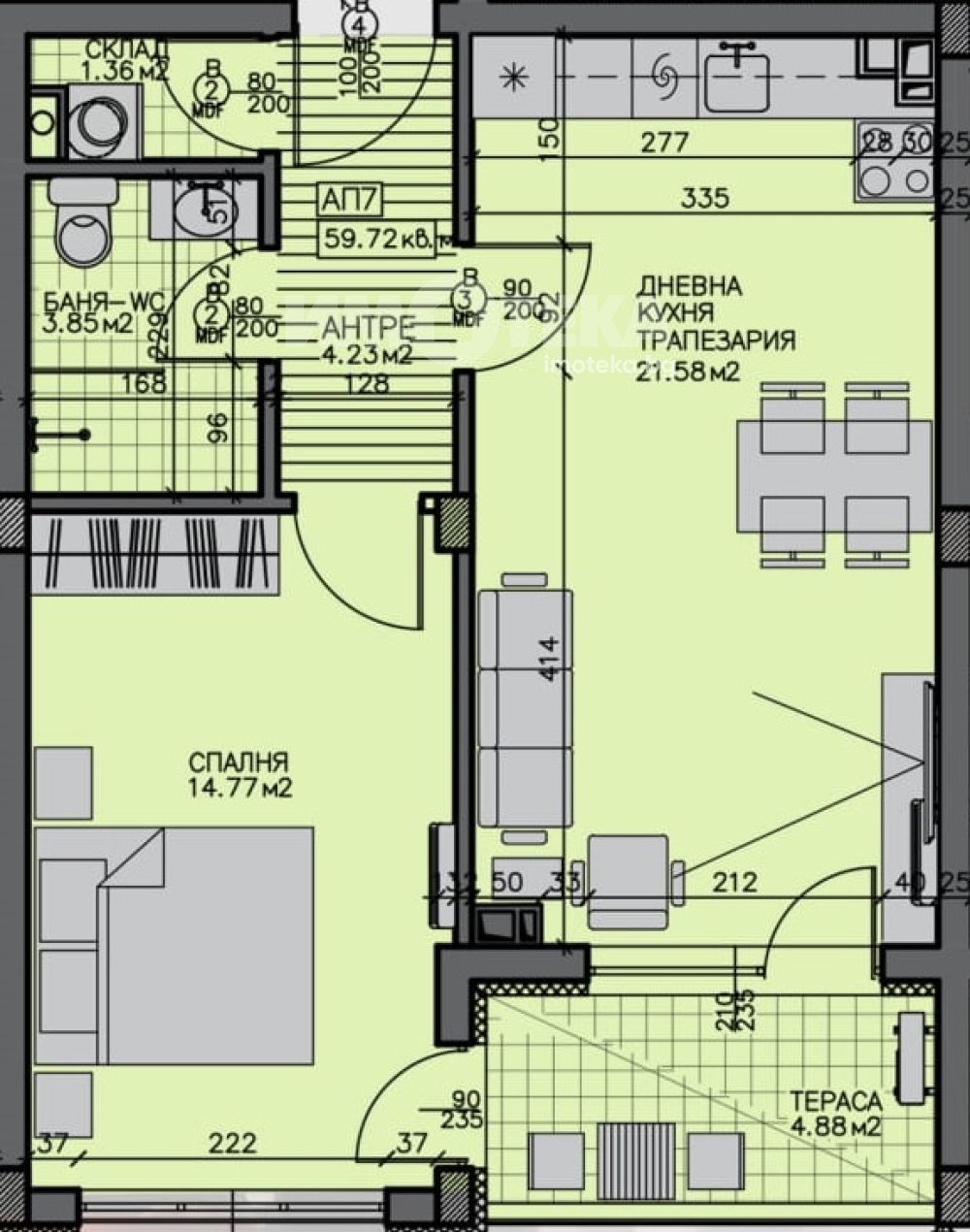 Двустайни – оптимално разпределение, идеални за младо семейство или инвестиция;